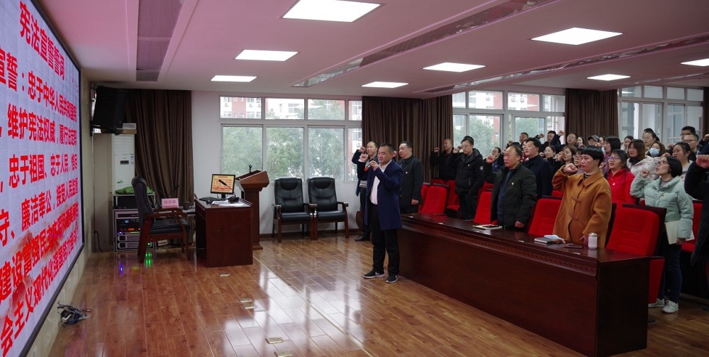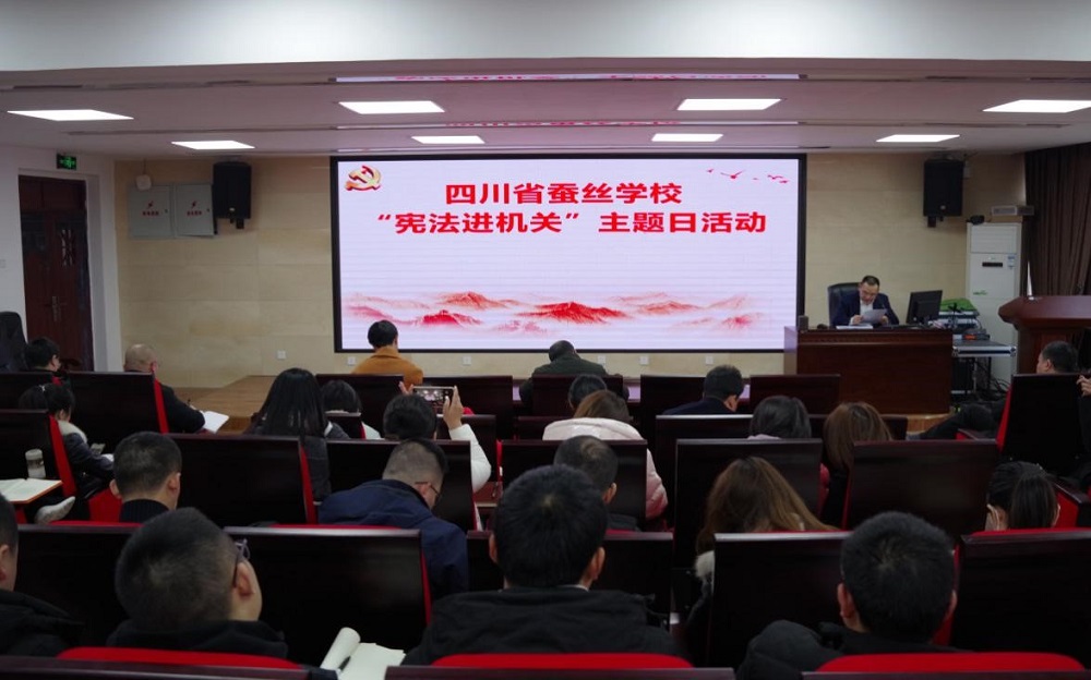 2021年12月4日是第八个国家宪法日,为进一步弘扬宪法精神、提升学校干部职工宪法意识、宪法自信、宪法自觉,学校举行“12•4”国家宪法日主题活动。2021年11月30日下午四川省蚕丝学校党委书记、校长龚自南组织了《宪法》的学习,全体参会人员认真观看了“宪法进机关”教育宣传视频,举行了宪法宣誓仪式。在党委书记、校长龚自南领誓人的带领下,全体党员整齐排列,右手举拳,庄严宣誓:“我宣誓,忠于中华人民共和国宪法,维护宪法权威,履行法定职责,忠于祖国、忠于人民,恪尽职守、廉洁奉公,接受人民监督,为建设富强、民主、文明、和谐、美丽的社会主义现代化强国努力奋斗!”