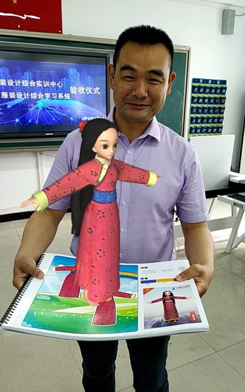 验收过程中,在龚校长的带领下,验收组对各项实训设备开展了现场运行、实际操作等综合检测。由刘春伶老师演示E+互动设计教学一体机的使用;由远湖科技有限公司梁经理,向验收小组演示“AR”课件资源交互虚拟仿真教学系统的成果,并实现了手机3D成像。验收组一致同意此次服装设计综合实训中心及“AR”课件资源交互虚拟仿真教学系统验收通过。