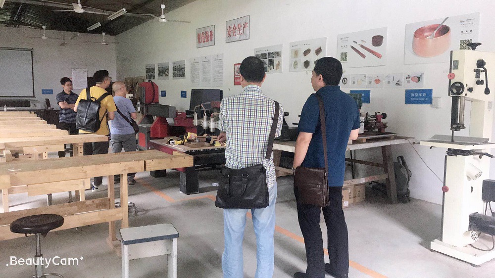 第二天,我校对成都艺术职业大学进行了调研,学校黄老师带领我们一行人员进行参观了学校的工法间、模型制作实训室、理室一体实训室、双师工作室等,并且重点介绍了环艺专业的办学特色、教学模式、课程建设及校企合作实训室建设的特色;工副部长陈涛对我校工美专业的现状进行了介绍,就专业建设实训室升级进行了交流分析;同时冯校长就针对双导师工作室的建设方向与发展作了指导性发言,“促进产教融合、校企双元育人”实行技术优势互补,节约教育资源及企业成本的“双赢”目标。
