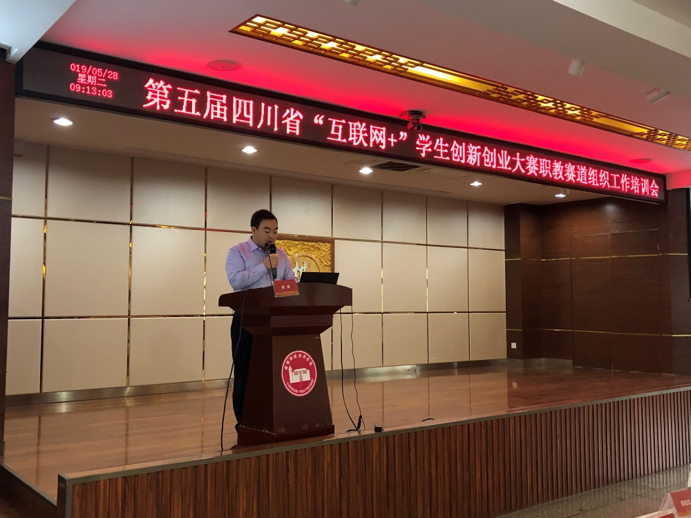 培训会上,四川省教育厅高教处创新创业工作负责人高波先生做了重要讲话,强调各院校必须重视和抓紧本届四川省“互联网+”学生创新创业大赛工作,并对各职业院校提出明确要求和期望。