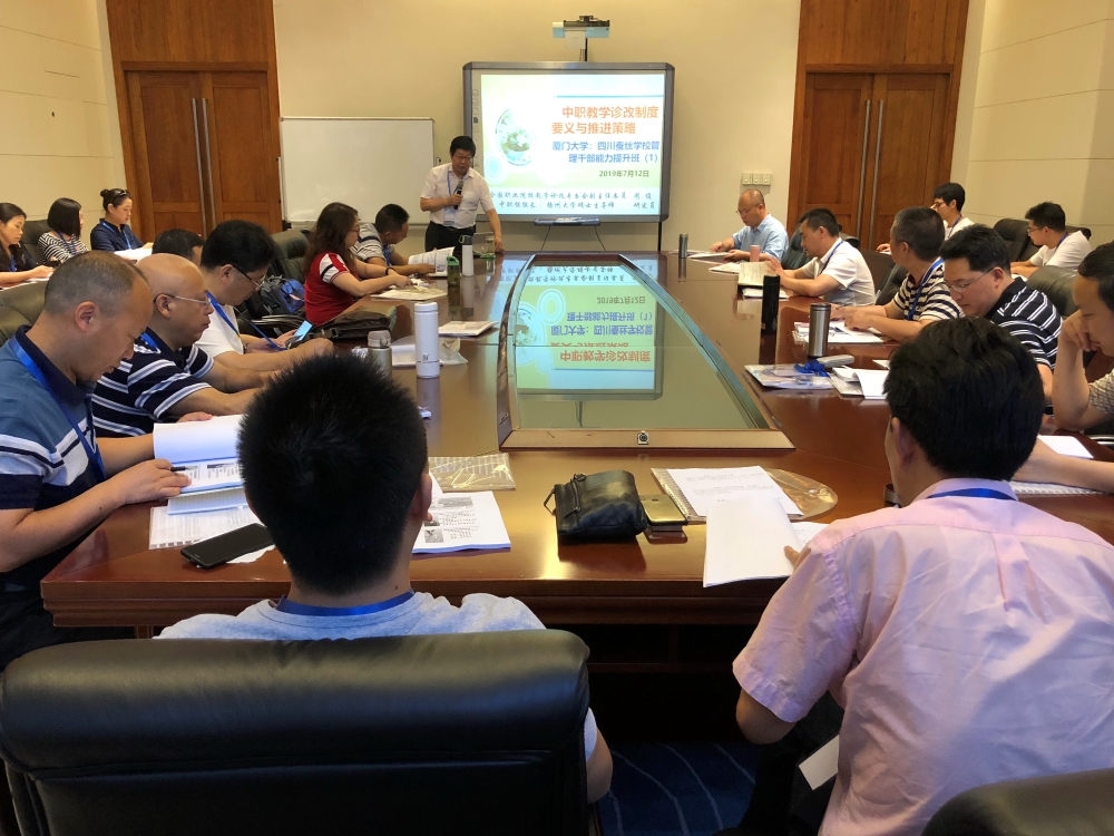 为进一步加强学校干部队伍建设,提升理论素养、知识水平和管理能力,强化把握职业教育新形势、落实新任务的履职意识和使命担当,全面推进学校示范校建设。2019年7月11日至16日,学校全体管理干部及骨干教师共计33人,到厦门大学进行管理综合能力提升研修培训。此次培训由中国职业技术教育学会承办,培训内容包括教学工作诊断与改进、“职教20条”解读、学校治理体系、采购招标管理及院校参观交流,分别邀请了全国职业院校教学诊改专委会副主任委员、中职组组长周俊教授,湖南省教科院研究员、博士生导师欧阳河教授,厦门工商旅游学校校长庄敏琦教授和厦门市公物采购招标有限公司总经理、高级经济师阮芳培等专家进行了专题培训讲座。期间,还组织全体培训人员到厦门工商旅游学校和与我校合作定单班的厦门天马微电子有限公司进行了参观学习。在学校行政办和学会培训部的精心组织安排下,培训取得圆满成功,可谓“带着问题去,满载成果归”。培训虽然时间短暂,但内容丰富、安排紧凑,既有理论高度,又有丰富的实践案例,既是一次业务充电又是一次思想洗礼,大家凝聚了共识,厘清了思路,纷纷感慨研修之行收获满满,表示要认真总结,将培训所学运用于实际工作中,为学校事业发展贡献智慧力量。(学校示范办供稿)