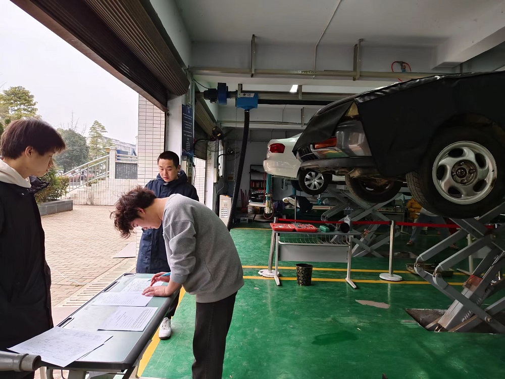 我校2021级汽修专业共38名学生参加此次考核。考核内容包括:动力系统检测与综合保养、自动变速箱功能检查保养、传动与分动功能检查保养、动力与驱动系统功能检查保养4个大项共23个小项的考核任务。考核场上同学们精神饱满,信心百倍,按照考核要求规范、熟练地进行操作;4位考评员严谨认真进行考核,按照评分标准进行评定,整个考核过程紧张有序,经过两天的考核考评,顺利完成了汽修专业38名学生的“1+X”考证工作,效果良好。