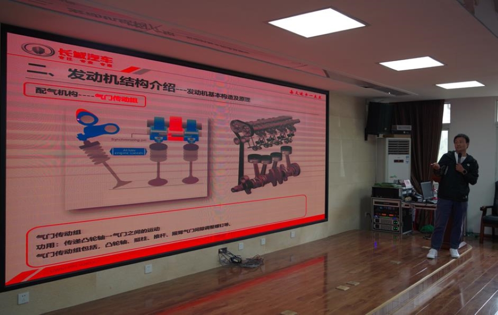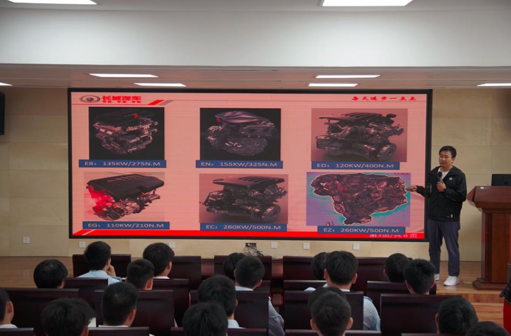 2021年5月27日,学校邀请长城汽车公司马国庆、谷世宁两位科长为汽修专业“行知双百”定向班的学生开展了一次精彩的汽车发动机技术专题讲座,圆满开展了职教活动周企业专家进校园有关活动。讲座上谷世宁科长生动形象地为同学们介绍了目前长城汽车内燃机的构造原理以及大量新技术;马国庆科长为同学们介绍了长城汽车这家民族品牌的汽车发展史及现状。