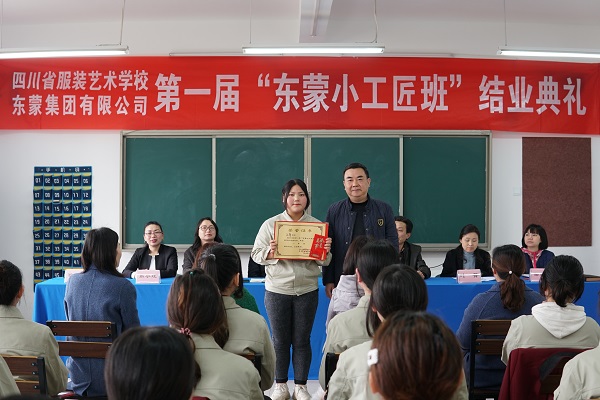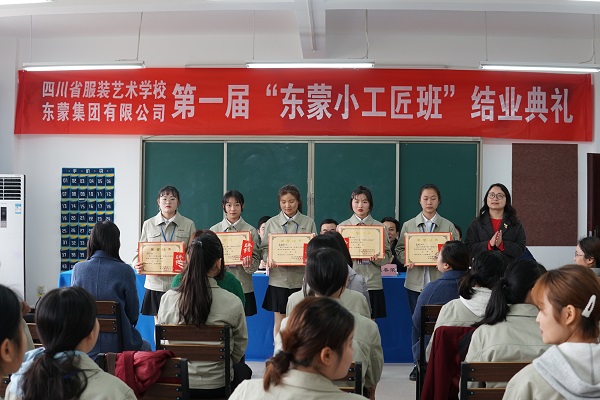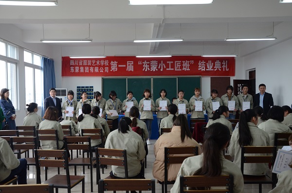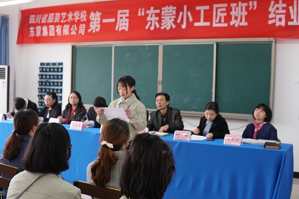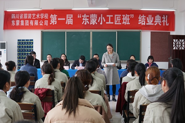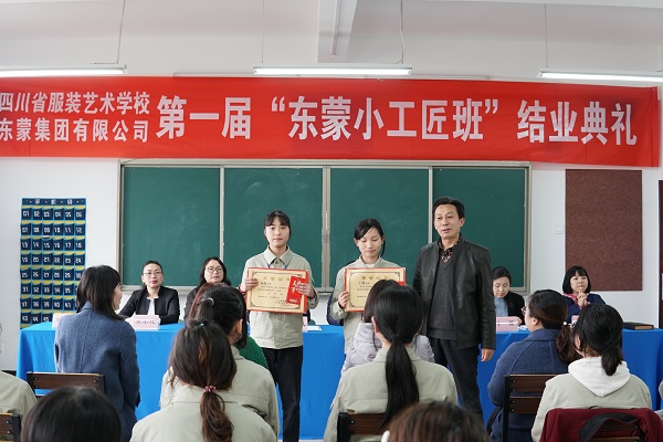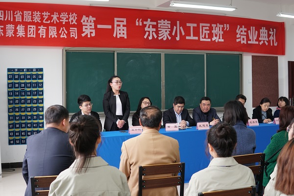 2019327日下午,四川省服装艺术学校与东蒙集团联合开办的“东蒙小工匠班”举行了结业典礼。会议由服装部部部长叶菁主持。