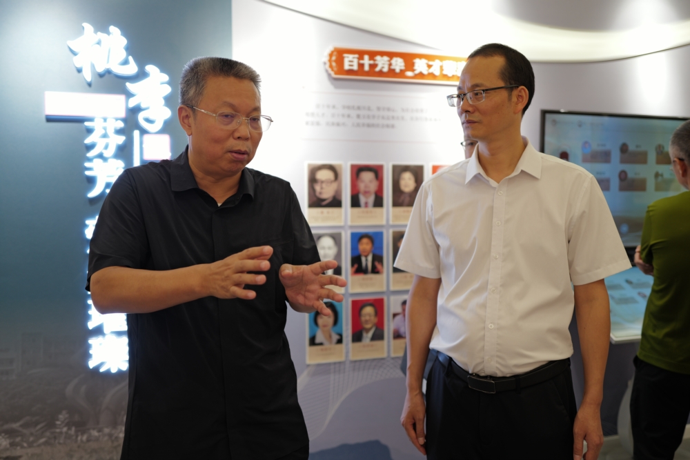参观校史馆时,郭宗海详细了解了学校的历史沿革,对近年来取得的成绩给予了充分肯定。在参观专业建设发展成就时,他驻足良久,重点关注了蚕桑和服装两个专业的发展情况。他指出,蚕桑和服装分别作为省级特色和省级重点专业,学校要在传承的基础上不断创新,积极对接地方产业和社会发展需求,推动产学研深度融合,增强服务区域经济发展的能力,持续擦亮百年职校的金字招牌。