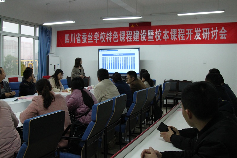 3月13日下午,四川省蚕丝学校特色课程建设暨校本教材开发研讨会成功召开,研讨会由教务处主任黄英主持,中国纺织出版社指导老师、学校教务处及各专业部负责人、各专业教研组组长、学科带头人、校本教材建设项目组成员参加了研讨会。会议的成功召开,对推进我校专业特色发展,开发校企特色课程和理实一体化教材有着重要的指导意义。